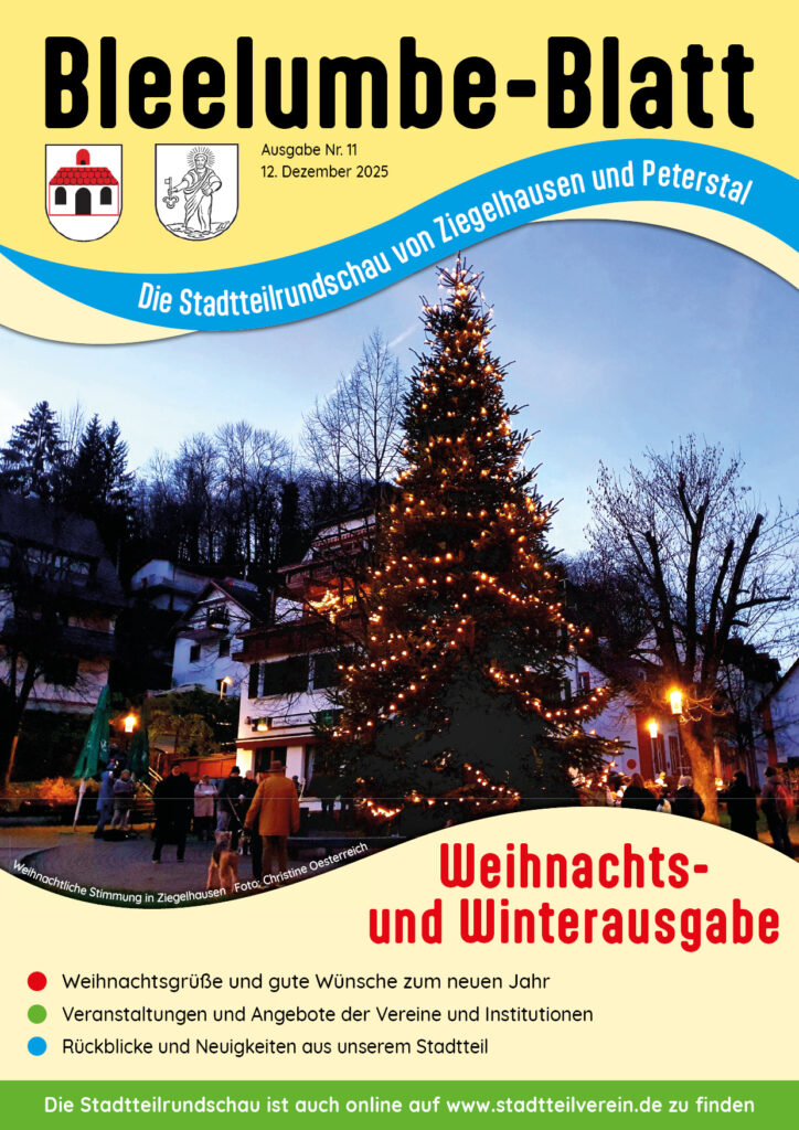 Liebe Ziegelhäuserinnen und Ziegelhäuser, liebe Peterstalerinnen und Peterstaler, wir wünschen Ihnen eine ruhige Adventszeit und ein schönes Weihnachtsfest. Auch wenn unser Stadtteil nicht überall festlich…